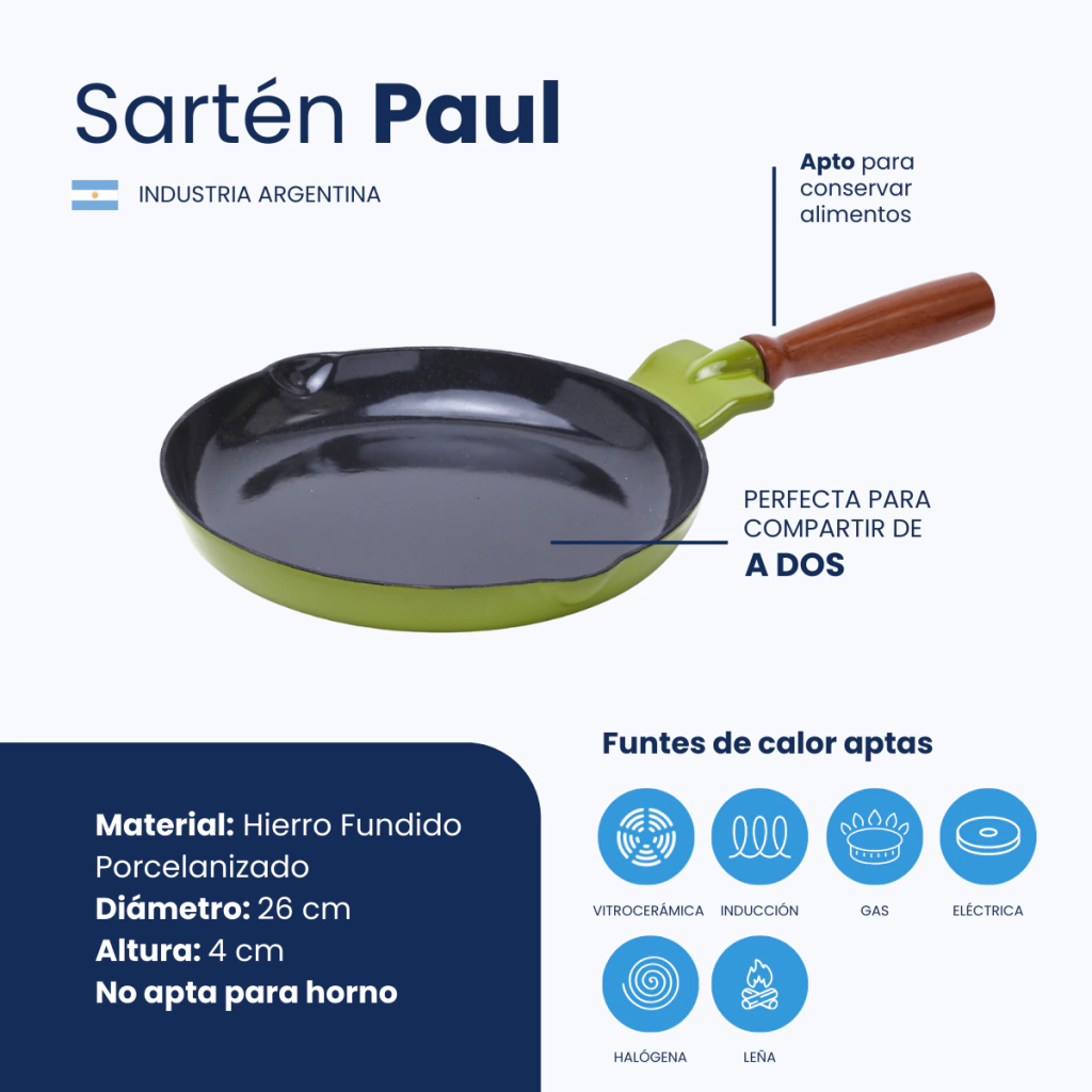 Paul es la sartén versátil que todo cocinero necesita. Con un diámetro de 26 cm, es perfecta para sellar carnes, saltear vegetales, preparar pescados o incluso cocinar huevos y pancakes con resultados impecables.